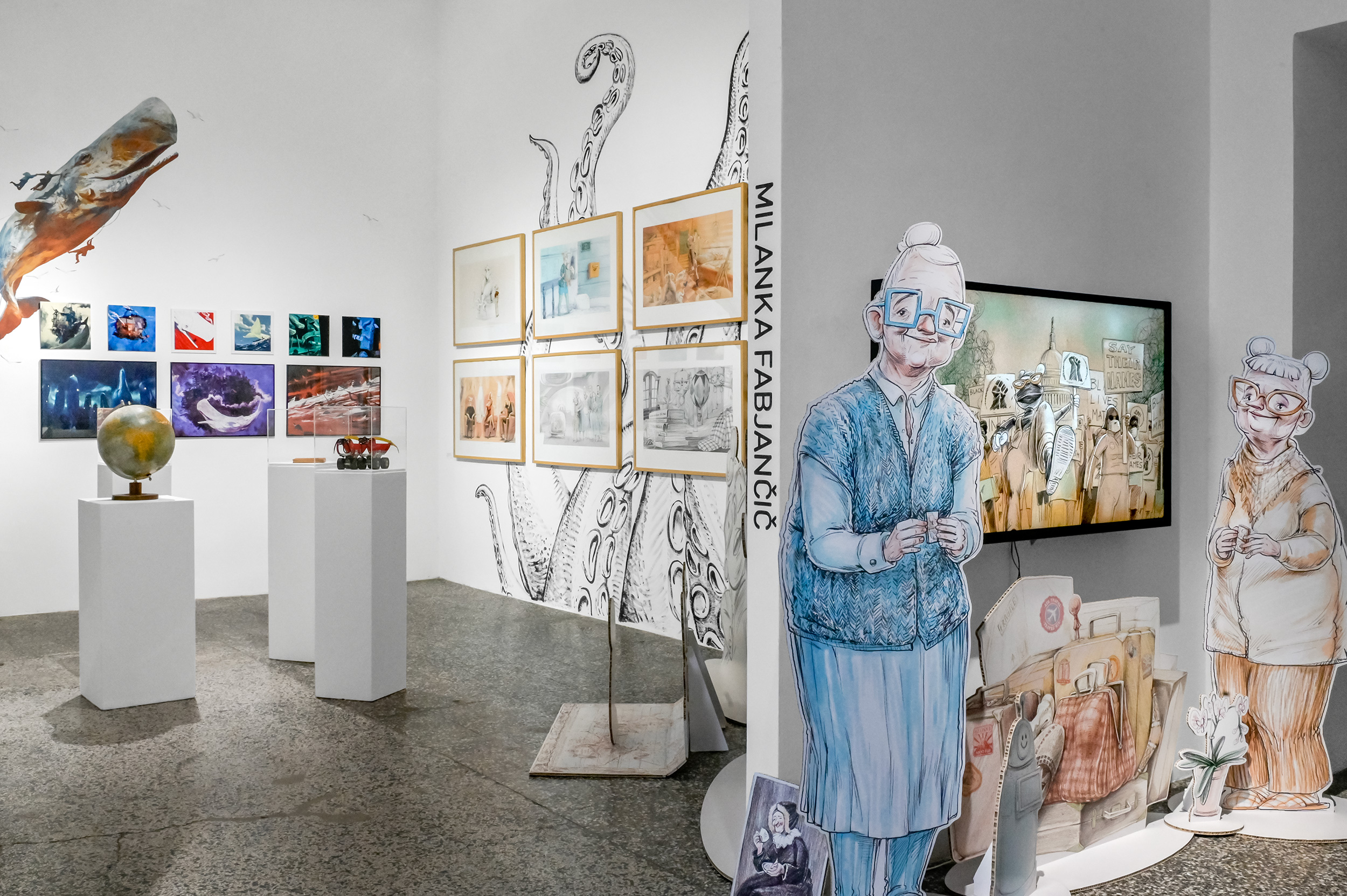 Za delo Milanke Fabjančič je značilno spogledovanje s starejšo estetiko animiranih filmov, v katero vpenja izredno karakterno risbo s poudarjeno anatomijo. Razstava je zasnovana ambientalno z izpostavitvijo in povečavo glavnih likov ter izbranih prizorov. Na razstavi bomo na ogled postavili risbe, ki so kombinacija svinčnika ter računalniške obdelave, skice iz omenjenih del ter tudi predmete, ki so ‘del scenografije’ v filmu. Obiskovalci si bodo lahko ogledali celoten animirani film.